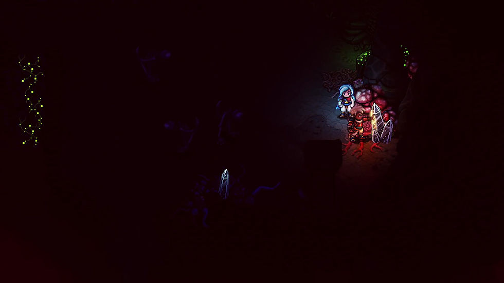 הכל חד, שקט ודומם. הבהוב אור ברסיסי הבדולח האדומים שמכסים את רצפת הבטון הקרה סביבך. יש אקדח שמסתובב לאט בטיסה ממש לפניכם. אויב כנראה הפיל אותו כשהגוף הגוסס שלהם התפוצץ במטר של רסיסים אדומים מבריקים.